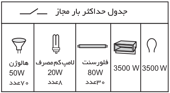 در جدول زیر می توانید حداکثر بار مجاز را مشاهده کنید و برای بارهای بالاتر از آن باید از کنتاکتور با آمپر مناسب استفاده کنید.