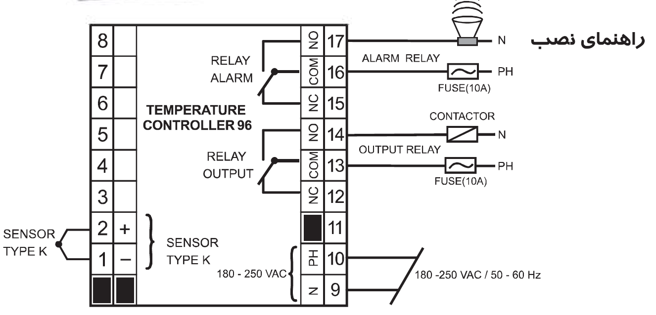 - راهنمای نصب ترموستات ۹۶شیوا امواج و سیم کشی روی دستگاه می باشد