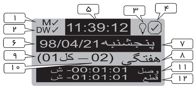 حالت هفتگی: در حالت هفتگی می توان ثانیه، دقیقه، ساعت و روز هفته را تنظیم کرد.