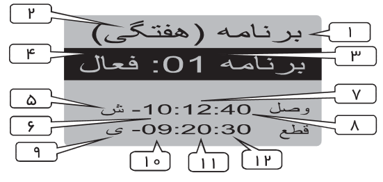 هر برنامه دارای دو حالت فعال و غیر فعال می باشد. اگر برنامه ای فعال باشد در خطوط پایین، زمان قطع و وصل مربوط به آن برنامه نشان داده می شود.