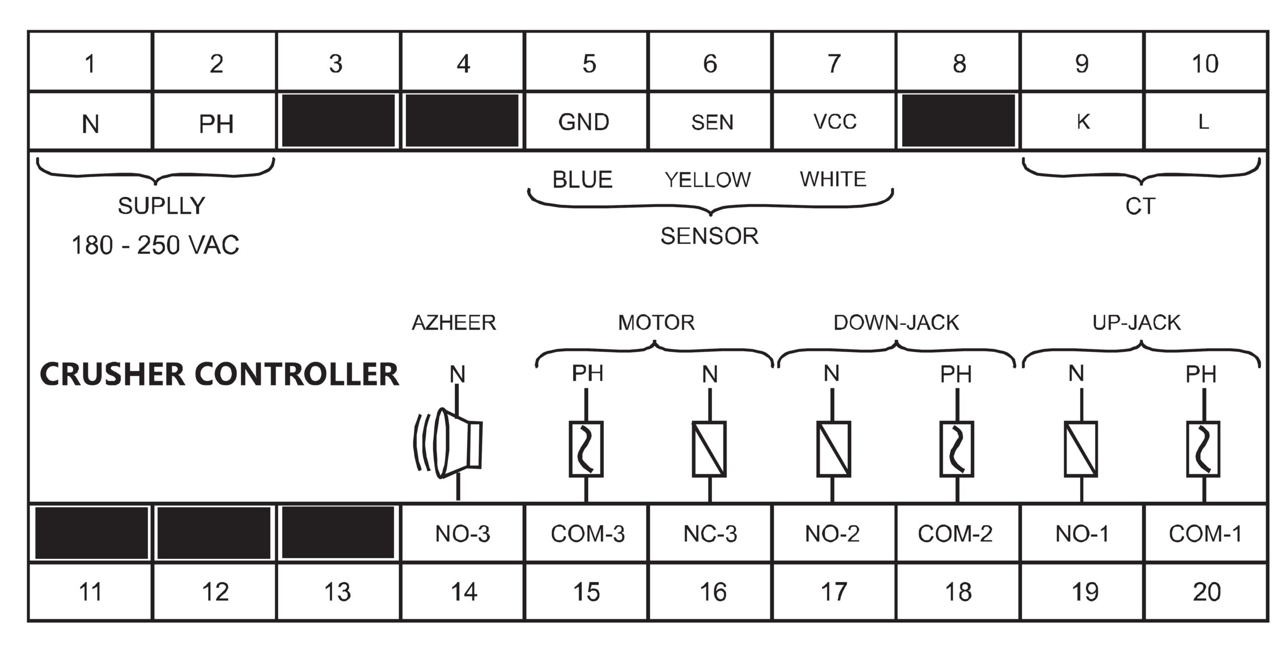 برای سیم کشی و نصب کنترل سنگ شکن شیوا امواج نقشه زیر عمل کنید.