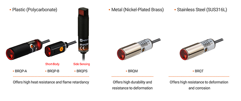 سنسورهای نوری استوانه ای BRQ آتونیکس با قطر 18 میلی متر در مدل های متنوع : دید از جلو، دید از بغل، انواع جنس بدنه (استیل SUS316L، برنج آبکاری با نیکل و پلاستیک) و در اندازه استاندارد و اندازه کوتاه طراحی شده اند. حداکثر فاصله تشخیص این سری سنسور ها 30 متر می باشد.