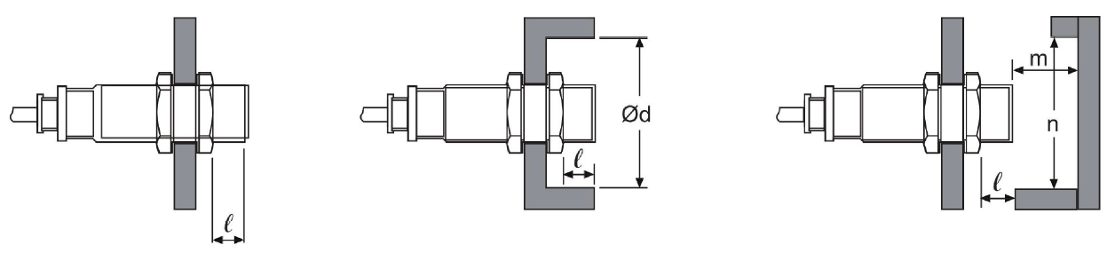 در صورت نصب سنسور ها روی یک صفحه فلزی، لازم است تا سنسور ها از تاثیرات هر هدف فلزی به جز هدف تشخیص، محافظت شوند لذا یک حداقل فاصله ای را مطابق شکل زیر در نظر بگیرید.