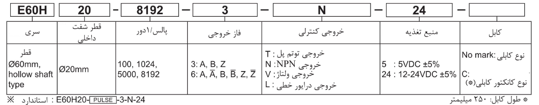 انکودر 1024 پالس E60H20-1024-3-N-24 خروجی NPN