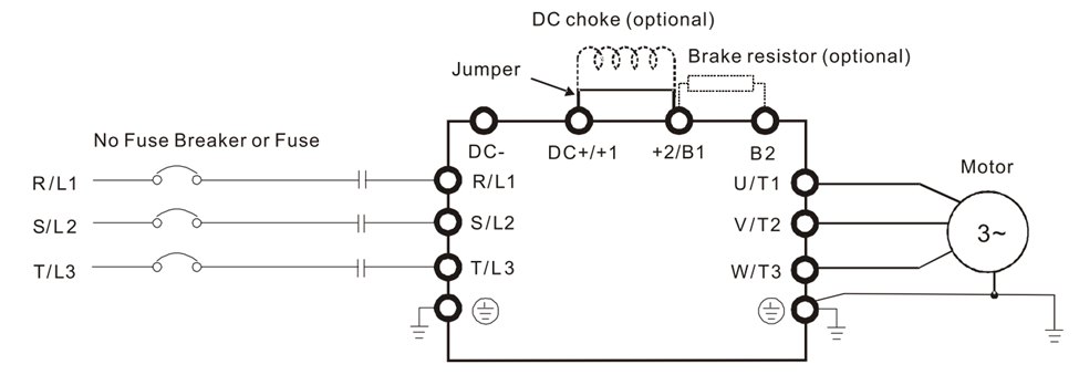 | ترمینالهای ورودی شبکه برای سهفاز ﹙Mains input – 𝟑φ﹚. | R/L𝟏, S/L𝟐, T/L𝟑 |