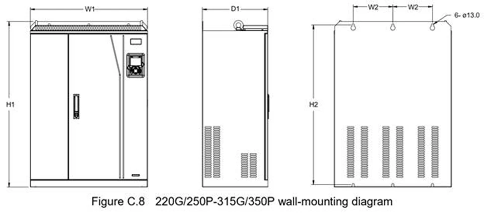 GD350A-132G/160P-4 | 132kW | G:150%x60s/P:120%x60s | فن دار | دارد | ندارد | 400 | 3.7 | 20 | 260A | 265A | 500x870x360mm |