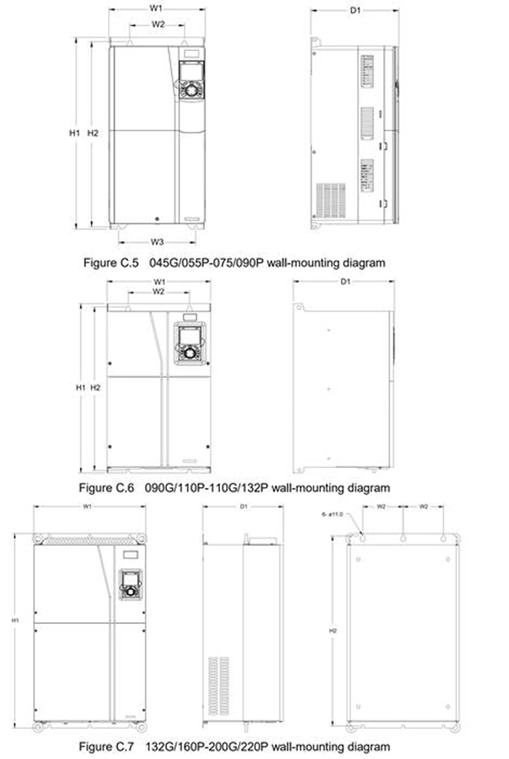 در ادامه، ابعاد استاندارد اینورتر GD350A در نصب Wall-mount را به تفکیک فریم و مدل میبینید تا بتوانید طراحی تابلو، انتخاب محل نصب و مسیر کابلکشی را دقیق و حرفهای انجام دهید.