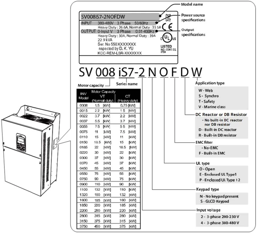 محدودههای اصلی (توان، ولتاژ، درجه حفاظت) در درایو LS IS7