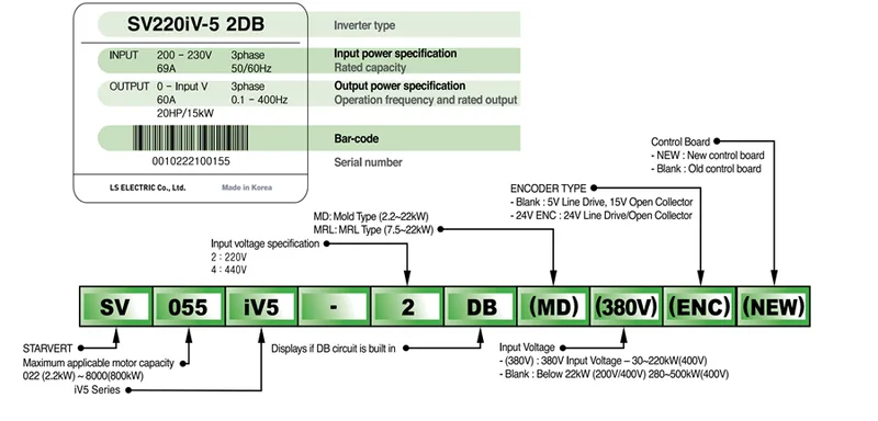 فرمت مدل: SV [####] iV5 – [2/4] [DB/DC] (MD) (380V) (ENC) که در آن: