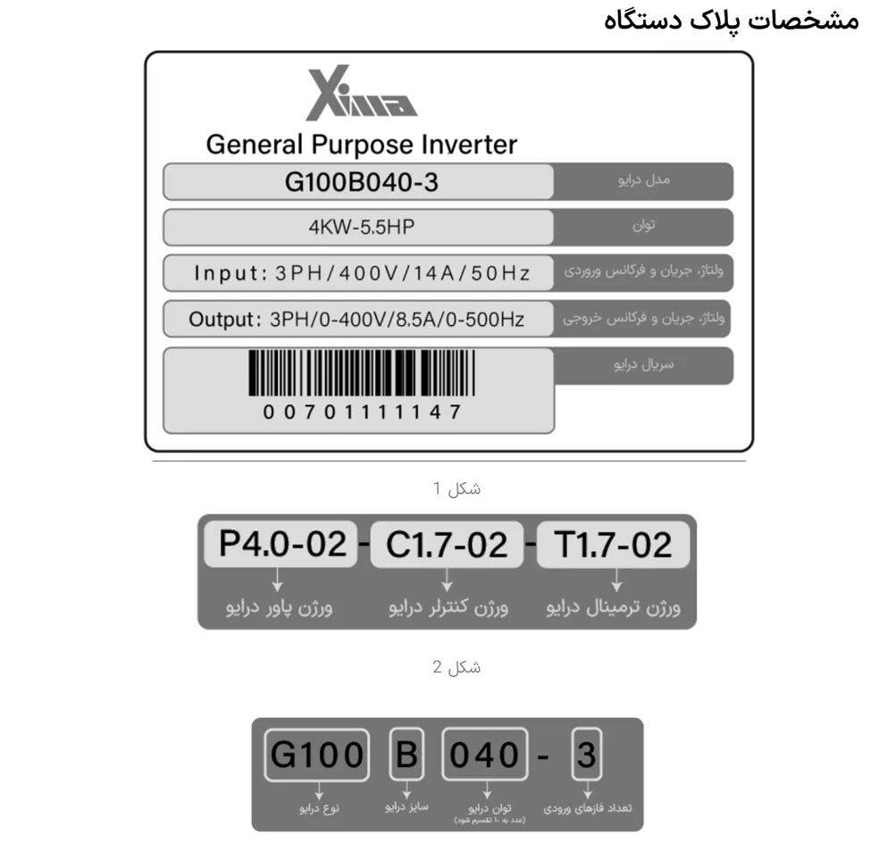نمونه کد: XIMAG100B022-3 که از دفترچه راهنما اینورتر زیما G استخراج شده است :