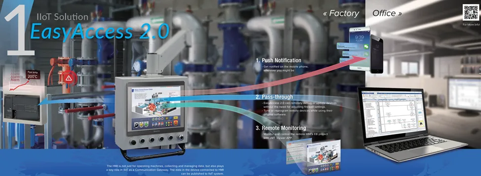 با **EasyAccess 2.0** برای دیباگ/آپدیت امن، و با **cMT Viewer / WebView / VNC** برای مانیتورینگ.