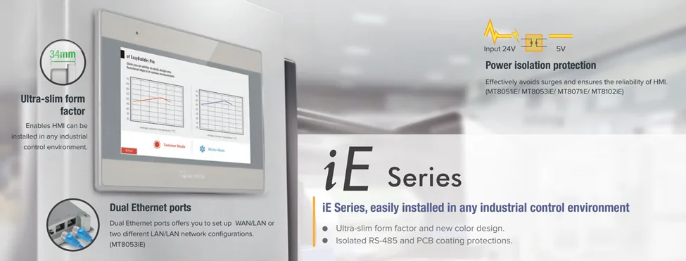 - Power Isolation داخلی در اغلب مدلهای iE تعبیه شده است. PCB Coating برای مقاومت در برابر رطوبت/گردوغبار ارائه میشود.