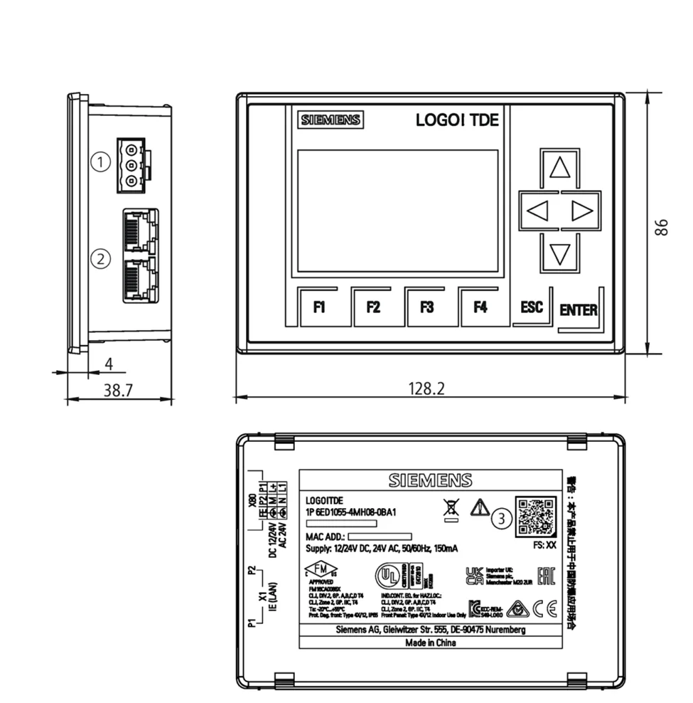 - LOGO- Operating Devices: نمایشگر TDE با 2×Ethernet و کلیدهای عملکرد.