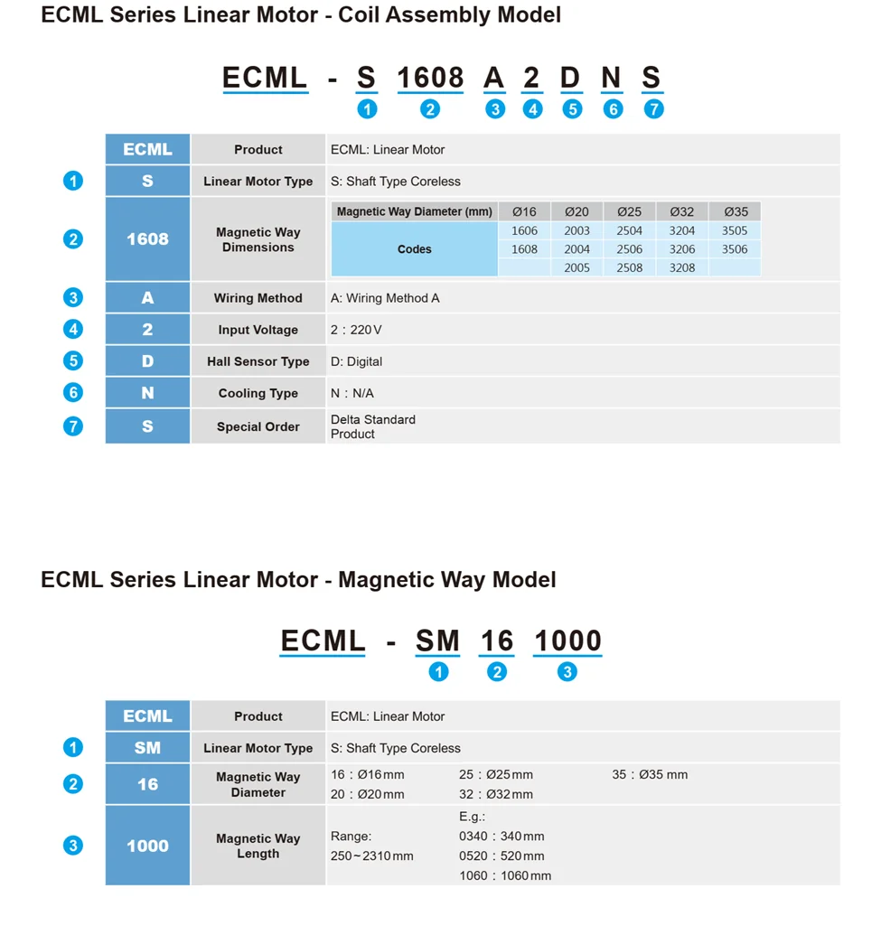ECML (خطی): سنسور هال دیجیتال داخلی، سنسور دما، سیمپیچی دوطرفه برای نصب منعطف؛ مگنتوی Ø16…Ø35 و طول 250…2310mm.