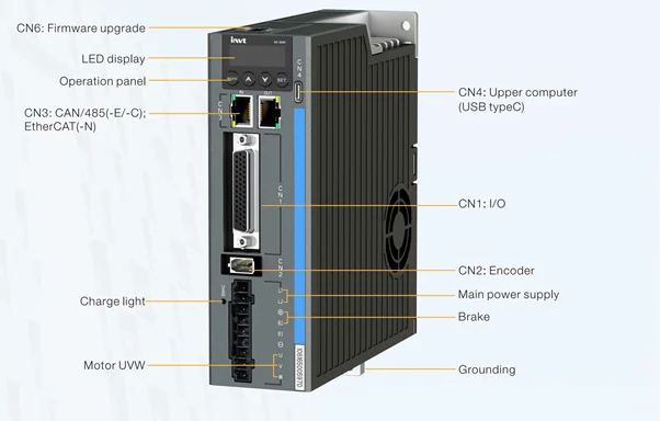 سروو موتور اینوت DA180A برای تجهیزات عمومی صنعتی طراحی شده است. تمرکز بر سادگی استقرار، شبکهپذیری و عملکرد پایدار است. این نسل جدید با طراحی فشرده، Type-C برای دیباگ و سه برابر اورلود عرضه میشود و به سه گذرگاه پرکاربرد متصل میشود. این مشخصات بر اساس صفحه رسمی INVT و کاتالوگ DA180A است.