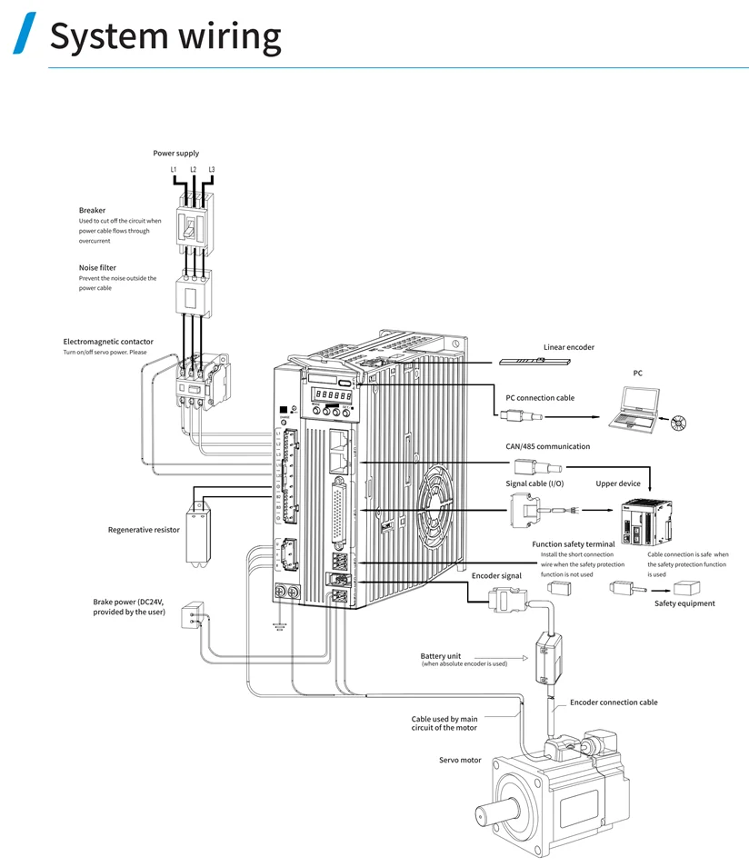 - شبکه EtherCAT/PROFINET: ترمینالهای CN3/CN1/CN7 مطابق جدول پینها؛ ظرفیت خروجی ترمینالهای سیگنال DC30V/50mA.