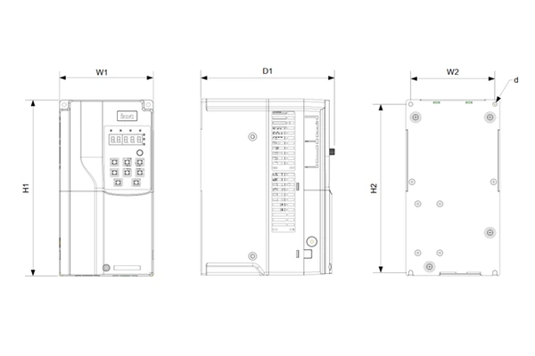 در شکل زیر میتوانید ابعاد اینورتر سه فاز INVT اینوت 22 کیلووات GD270-022-4 را مشاهده کنید: