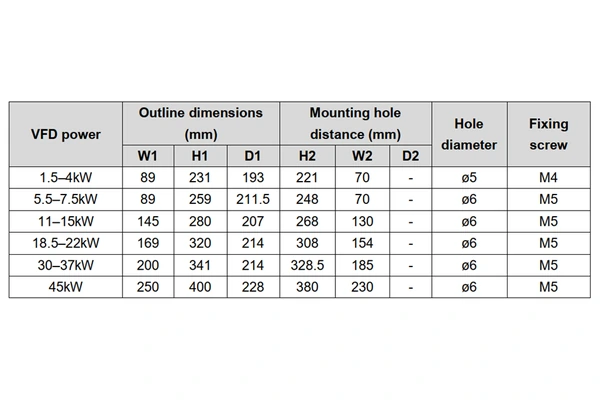 در شکل زیر میتوانید ابعاد اینورتر سه فاز INVT اینوت 22 کیلووات GD270-022-4 را مشاهده کنید: