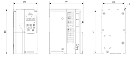 در شکل زیر میتوانید ابعاد اینورتر سه فاز INVT اینوت 30 کیلووات GD270-030-4 را مشاهده کنید:
