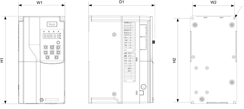 در شکل زیر میتوانید ابعاد اینورتر سه فاز 45 کیلووات INVT اینوت GD270-045-4 را مشاهده کنید: