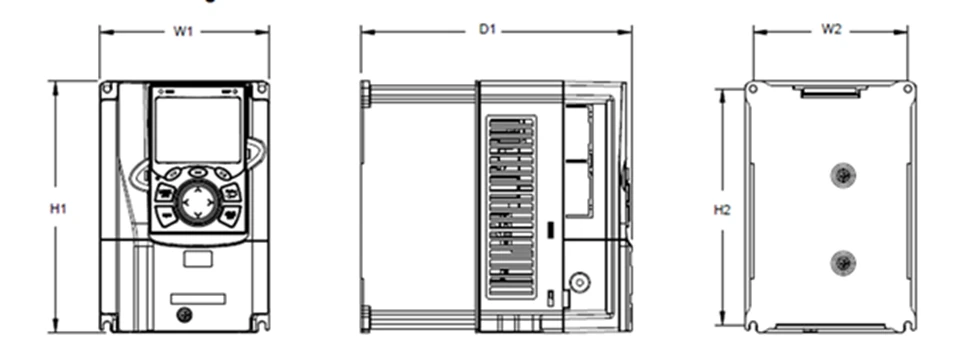 در شکل زیر میتوانید ابعاد اینورتر سه فاز INVT اینوت 1.5 و 2.2 کیلووات GD350A-1R5G/2R2P-4 را مشاهده کنید: