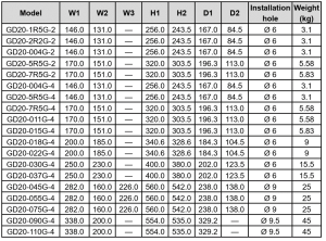 ابعاد اینورتر سه فاز 30kW اینوت GD20-030G-4