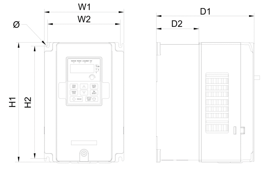 ابعاد اینورتر سه فاز 30kW اینوت GD20-030G-4