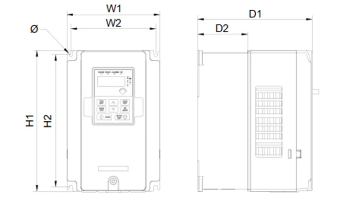 در شکل زیر میتوانید ابعاد اینورتر سه فاز INVT اینوت 4 کیلووات GD20-004G-4 را مشاهده کنید: